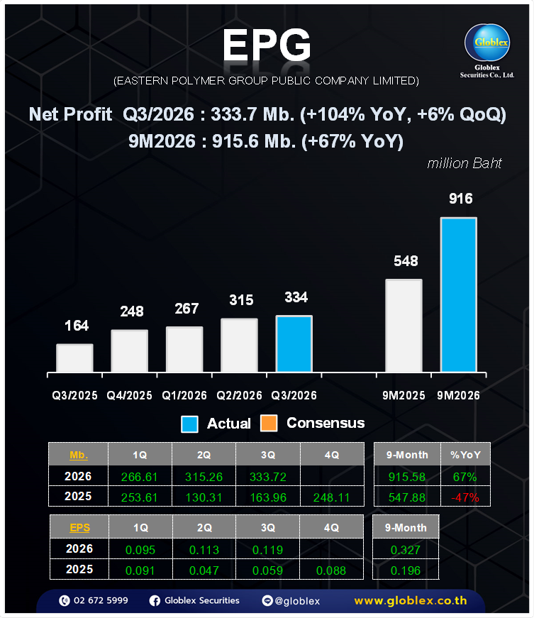 EPG : - EASTERN POLYMER GROUP (EPG TB) - Solid 3QFY26 is just the beginning