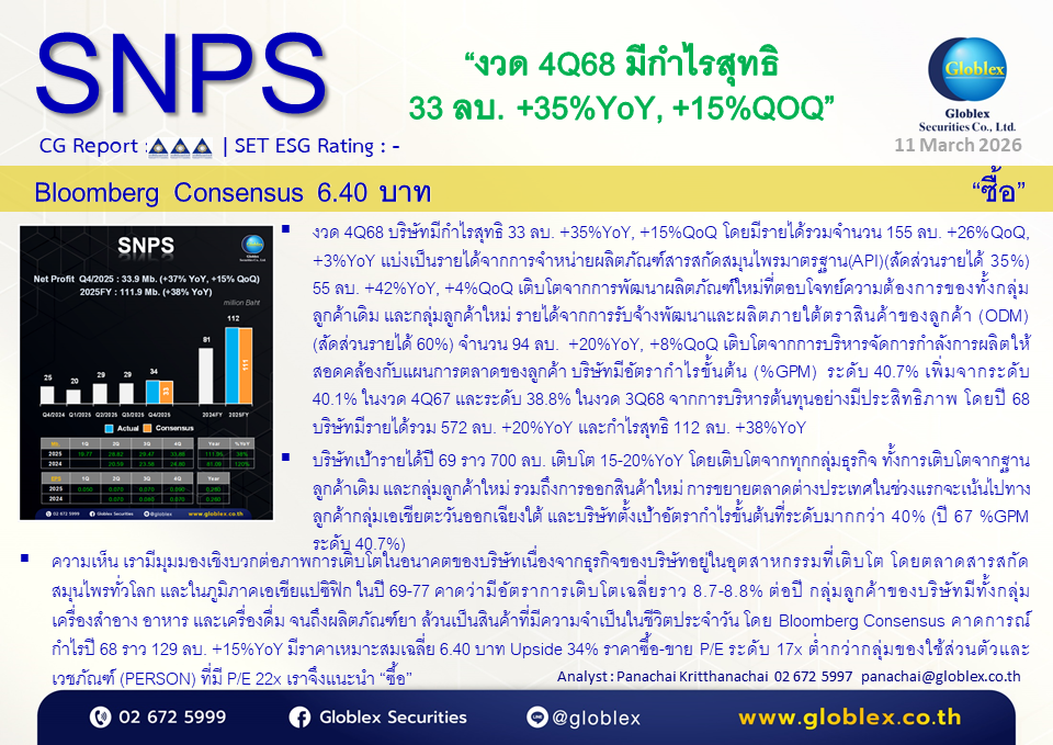 SNPS : "Buy" ราคาที่เหมาะสม : 6.40 - SNPS_Review4Q68_110326_Template